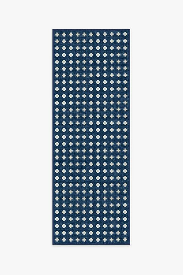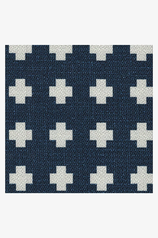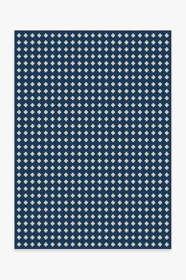 A timeless style. Our Adde Navy Rug will make a subtle statement in any space. Small white cross motifs dot this dark blue rug, a simple design for elevated tastes. The extra-durable, machine-washable material is perfect for both outdoor and indoor use, especially high-traffic areas and those exposed to the elements.