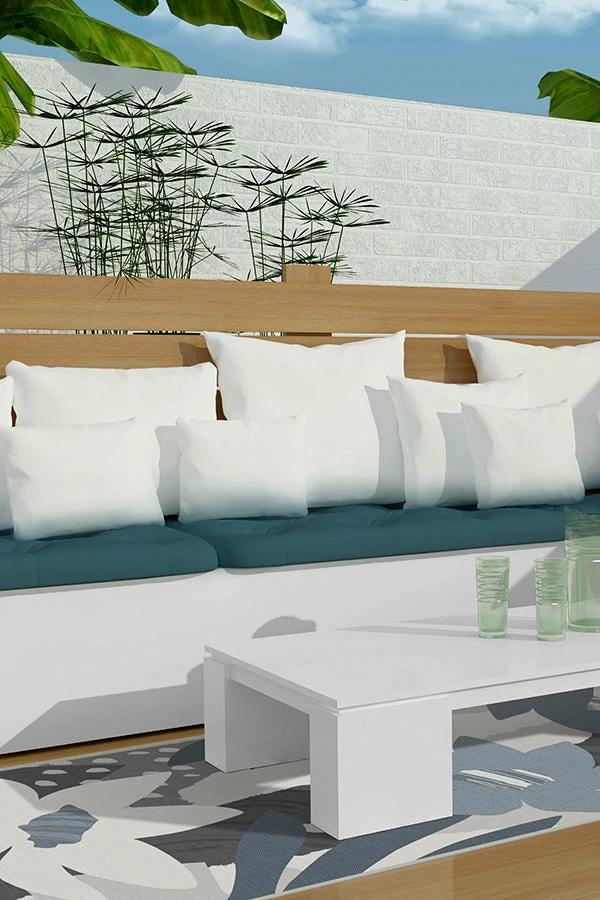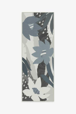 Liven up your home with this tropical design. Our Arcadia Steel Blue Rug features a large floral pattern offset with abstract elements in a calming color palette of denim blue, slate, and shades of grey. The extra-durable, machine-washable material is perfect for both outdoor and indoor use, especially high-traffic areas and those exposed to the elements.