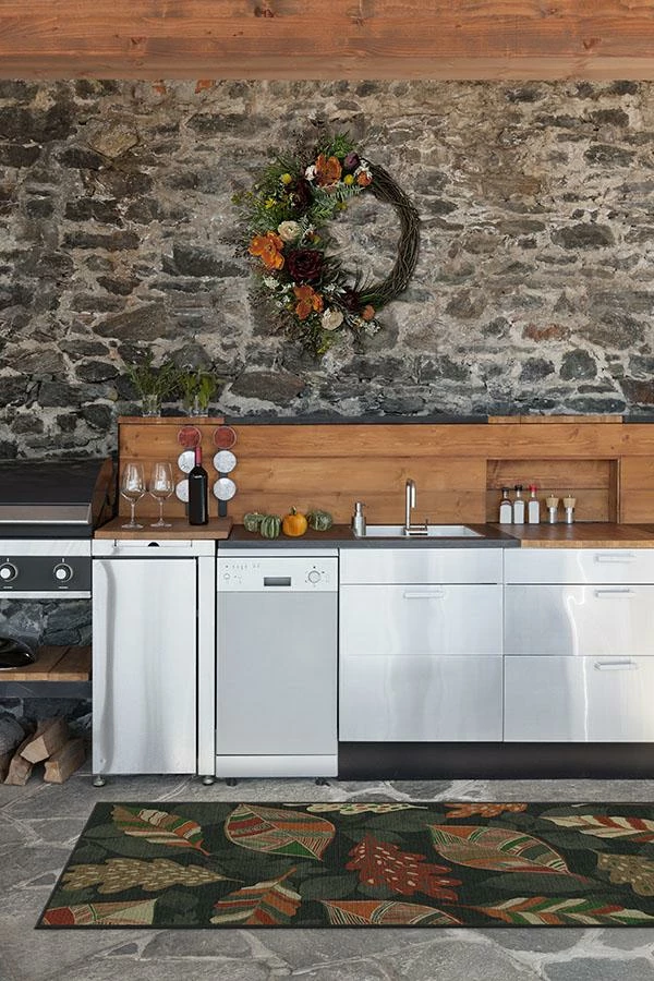 Fall in love with our autumn-inspired Outdoor Aurelia Forest Green Rug. The design features fallen leaves in muted tones of mahogany and crimson red, orange, green, beige, and grey, painting the look of a cool autumn day after a soft rainfall. This design is the perfect addition to a calming and nature-inspired home. Made with extra-durable, machine-washable material that’s perfect for both outdoor and indoor use, especially high-traffic areas and those exposed to the elements.