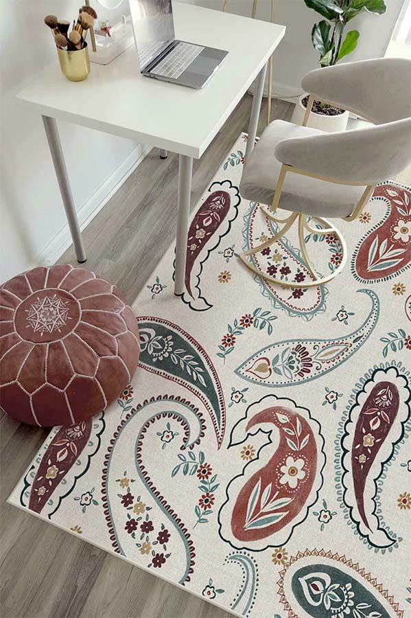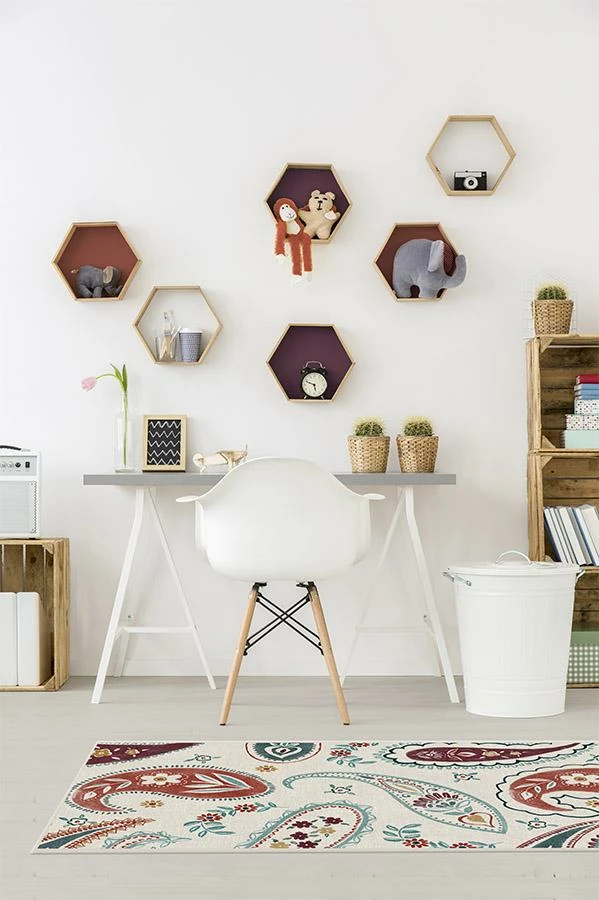 Add a touch of whimsy into your teen or tween’s room with Boteh Multicolor Rug. This design plays up the traditional paisley pattern with a contemporary palette of raspberry, garnet red, teal and pops of a freshening yellow.