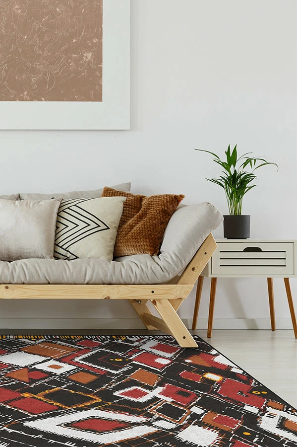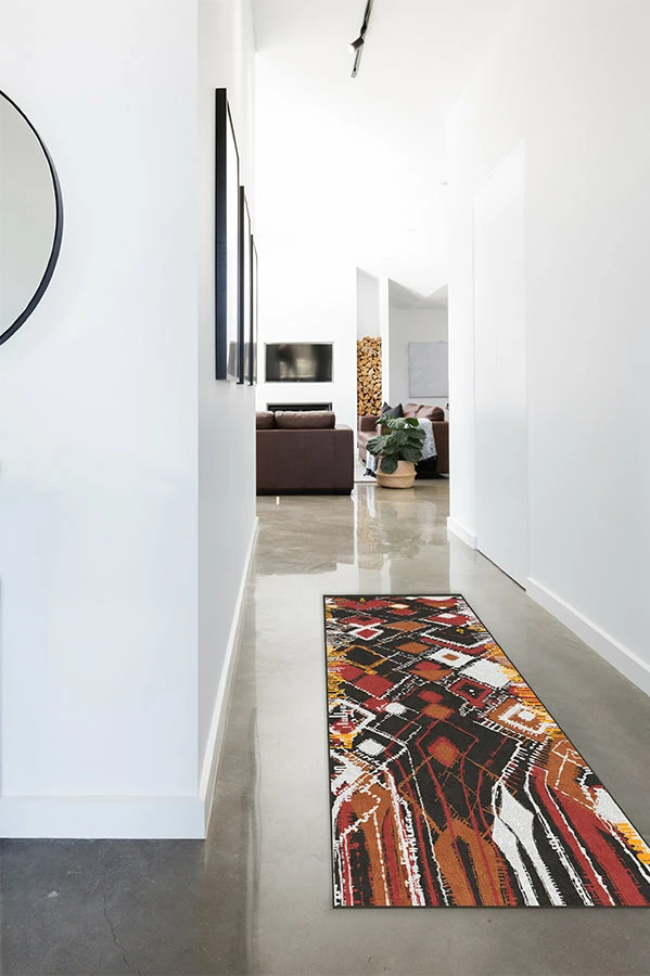 Roll out our Delikesh Autumn rug to bring warmth and decorative spice to your home’s interior furnishings. High-contrasting, energetic hues of autumn orange, merlot red, and Danish Yellow intermix upon a background of tiramisu, culminating in an expressive, mosaic-abstract design. Enliven the season by adding this exceptional accent to any urban and suburban space.