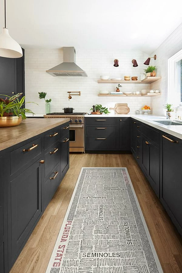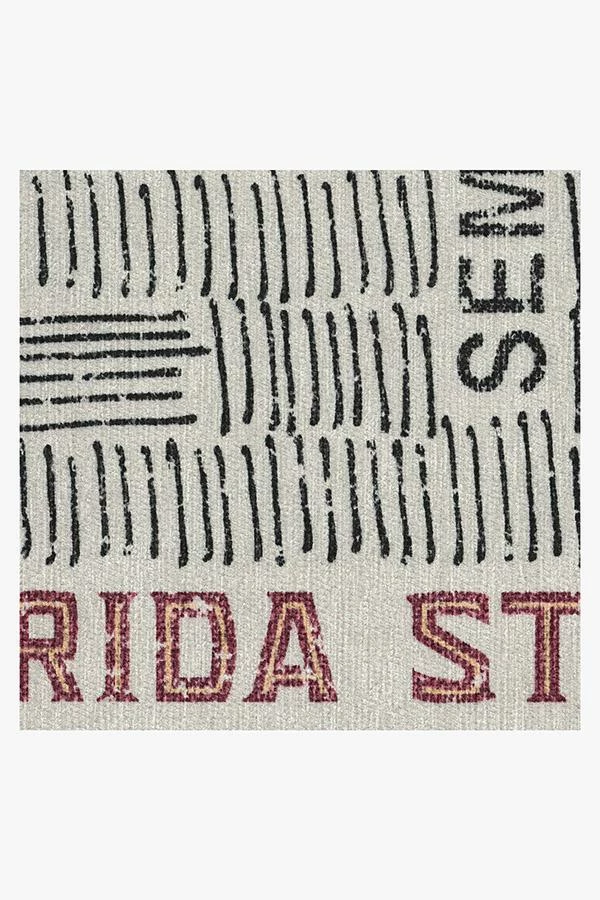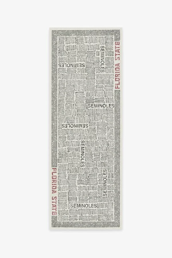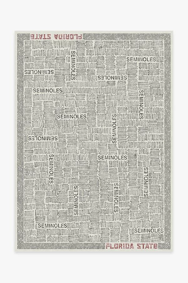 Fear the Spear! Support your favorite team with this tally mark-inspired rug in cream and black, with “Seminoles” written in between horizontal and vertical lines and garnet red “Florida State” text on the edges. Water-resistant, stain-resistant, and machine-washable.