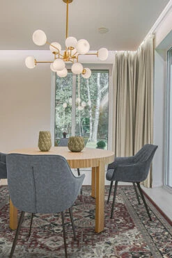 The Hendesi Heriz Bordeaux Rug is a contemporary take on the classic Persian style rug design. Featuring a wine-colored medallion centerpiece, flanked by a cool blue border motif, this rug lends an air of sophistication to any room.