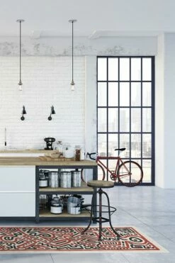 A striking work of art sure to make a statement. Our Keith Haring Funny Gallery Ivory Red Rug is inspired by the artist’s original color palette. The poppy red and black design stand out on a creamy pearl white background. Water-resistant, stain-resistant, and machine-washable.