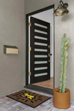 A welcoming pop of color. Our Keith Haring Radiant Baby Yellow Doormat features a Haring original design in bright yellow with black accents on a coir-like background. Made with durable, machine-washable material that is fade-resistant and mold-resistant.