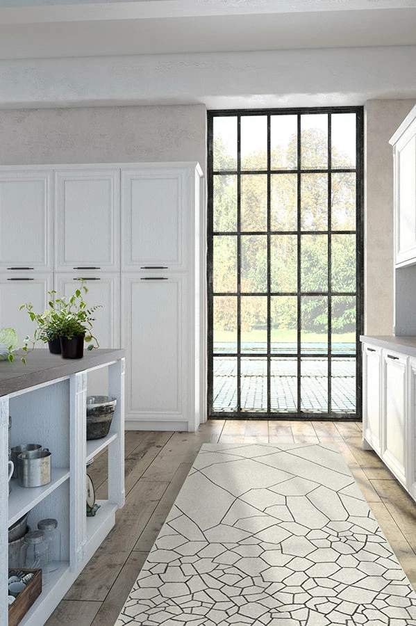 Inspire you home with architectural elegance by placing our Kella Off-White rug among your current home furnishings. Fine, abstract lines colored in neutral grey on mascarpone white create this stunning geometric pattern perfectly suitable to elevate any room from modern to minimalist, contemporary to mid-century modern.