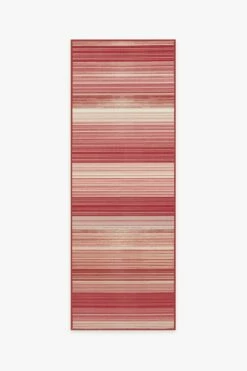 Deck your halls with the sweet, vintage-style of our Linear Striped Candy Cane Rug. Designed with a festive mix of stripes in ruby red, light cream, and raspberry hues, this rug is easily paired with your seasonal decorations year after year. Made from our water-resistant, stain-resistant, and machine-washable low-pile Chenille material.