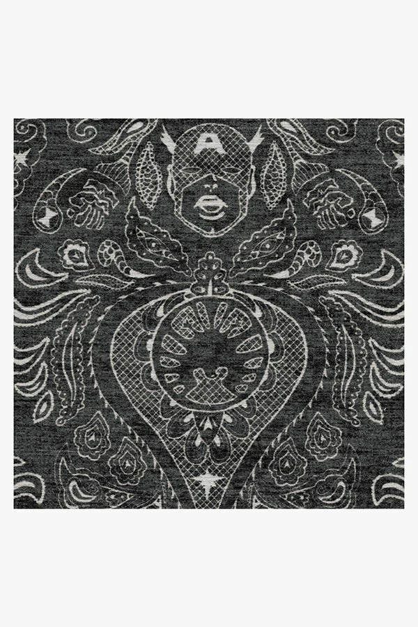 Classic characters with a classic design. Our Marvel Damask Charcoal Rug features the original Marvel Super Heroes and symbols from the 1960s, including Thor, Hulk, Captain America, Spider-Man, and Wasp in white on a charcoal grey background. Made from our water-resistant, stain-resistant, and machine-washable low-pile Chenille material.