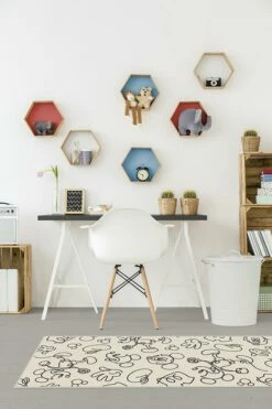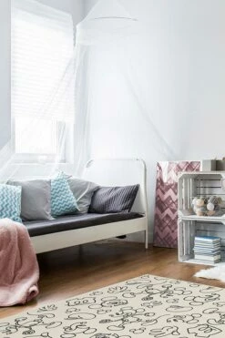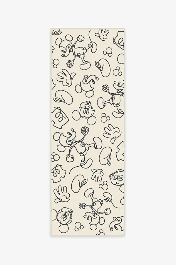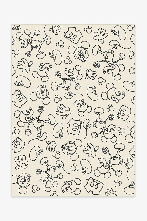 Kids of all ages will surely love Mickey Doodles Black and Ivory Rug. Featuring continuous line drawings of Mickey Mouse, rendered in black on a sand dollar backdrop, this animated Disney rug is sure to spark the imagination.