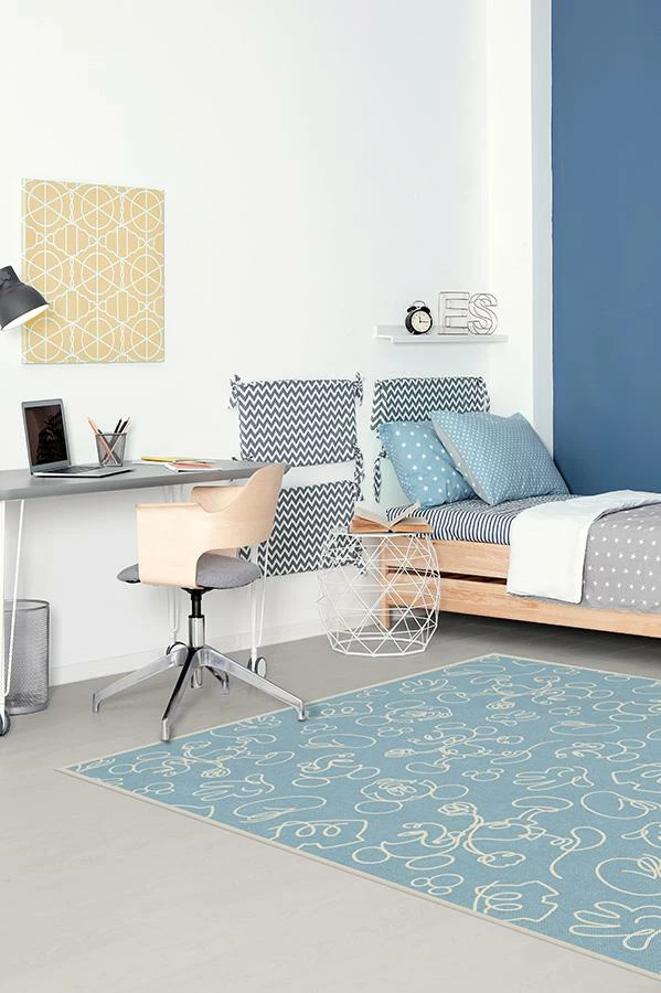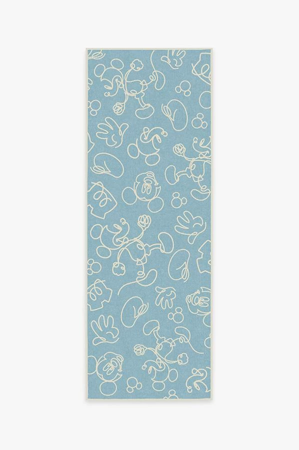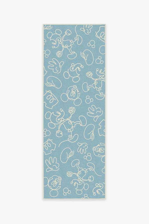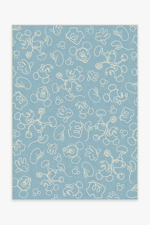 Indulge in hours of playtime with our Mickey Doodles Blue Rug. This fun, Disney-themed baby blue rug features scattered bits of Mickey Mouse, drawn in continuous linework and rendered in grey and sand dollar hues on a backdrop of blue. A whimsical rug to inspire the up-and-coming animator in your home.
