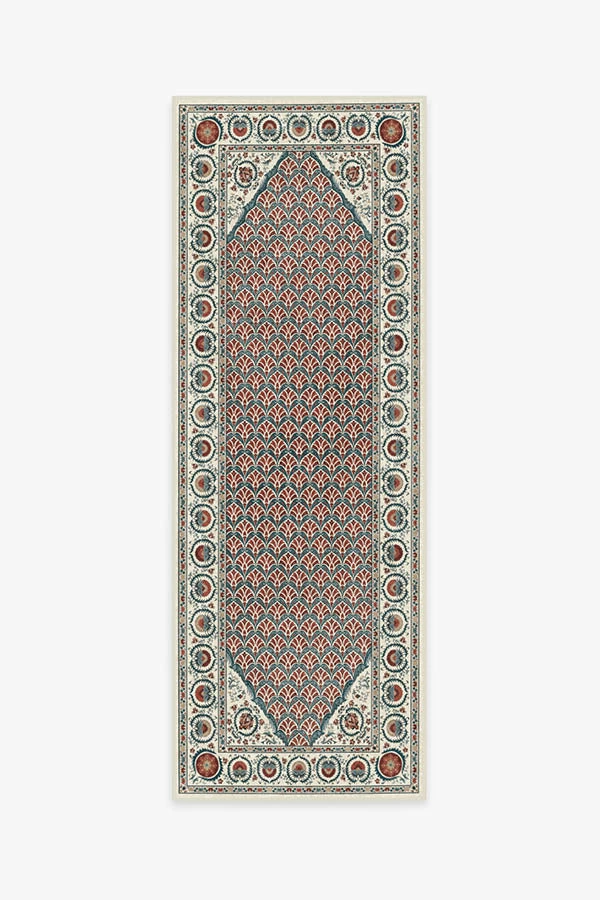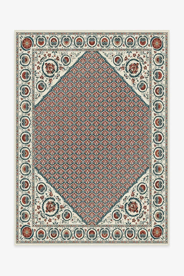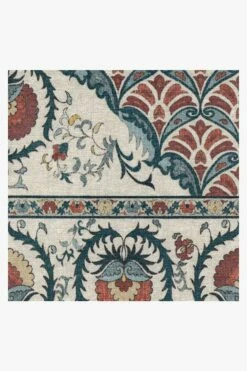 Persian rug design meets suzani’s ornate floral motifs with the Samira Suzani Imari Rug. Featuring a bed of botanicals flanked by highly stylized floral elements reminiscent of traditional Persian-style rugs, this rug boasts a beautiful texture, color, and sheen that looks elegant and luxurious. Tinted in a 17th-century Japanese porcelain-inspired color palette of coriander, wine red, and steel blue, this rug will instantly up the style of any room.