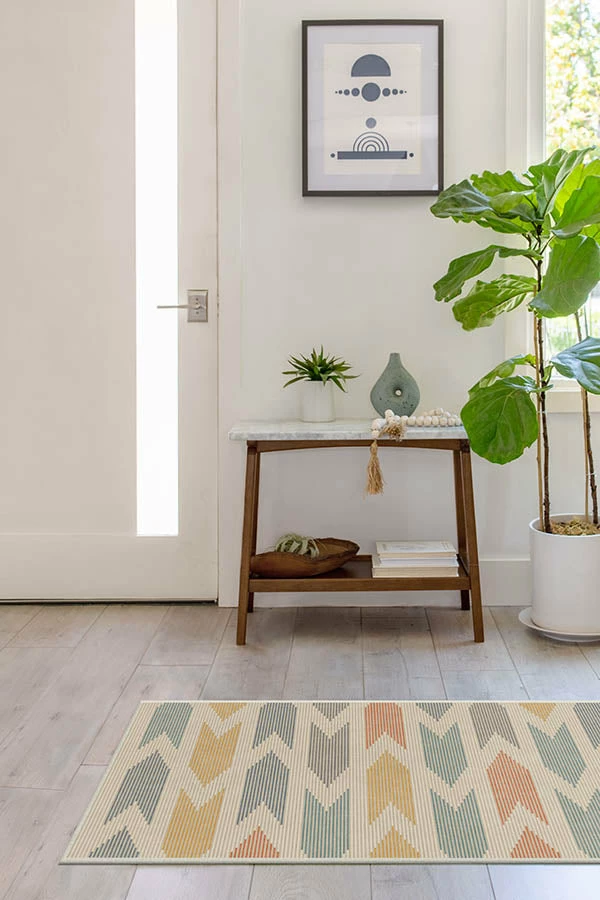 Simple yet statement-making. Our Savannah Multicolor Rug is inspired by modern heritage designs, featuring an all-over geometric pattern in alternating pops of gold, coral, blue, and green. The extra-durable, machine-washable material is perfect for both outdoor and indoor use, especially high-traffic areas and those exposed to the elements.