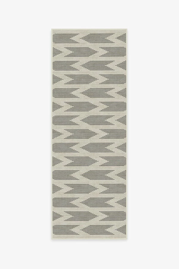 A minimal modern heritage design. Our Savannah Stone Rug features an all-over geometric pattern in black and subdued hues of warm ivory. The extra-durable, machine-washable material is perfect for both outdoor and indoor use, especially high-traffic areas and those exposed to the elements.