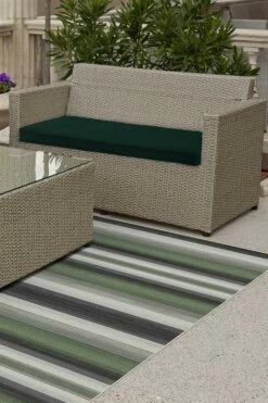 A classic pattern gets a colorful update. Our Serape Stripe Green Rug has a pattern of alternating lines in green, grey, and white with an ombre effect. The extra-durable, machine-washable material is perfect for both outdoor and indoor use, especially high-traffic areas and those exposed to the elements.