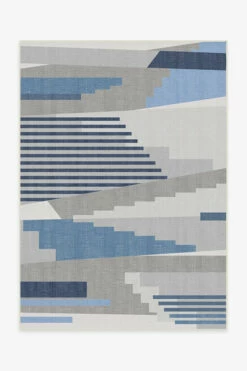 A modern, abstract eye-catcher. Inspired by dramatic cliff faces and playful color blocking seen in Bauhaus art, our Tropea Grey and Blue Rug pairs cool greys with sky blue, denim blue, and deep navy blue tones. The extra-durable, machine-washable material is perfect for both outdoor and indoor use, especially high-traffic areas and those exposed to the elements.