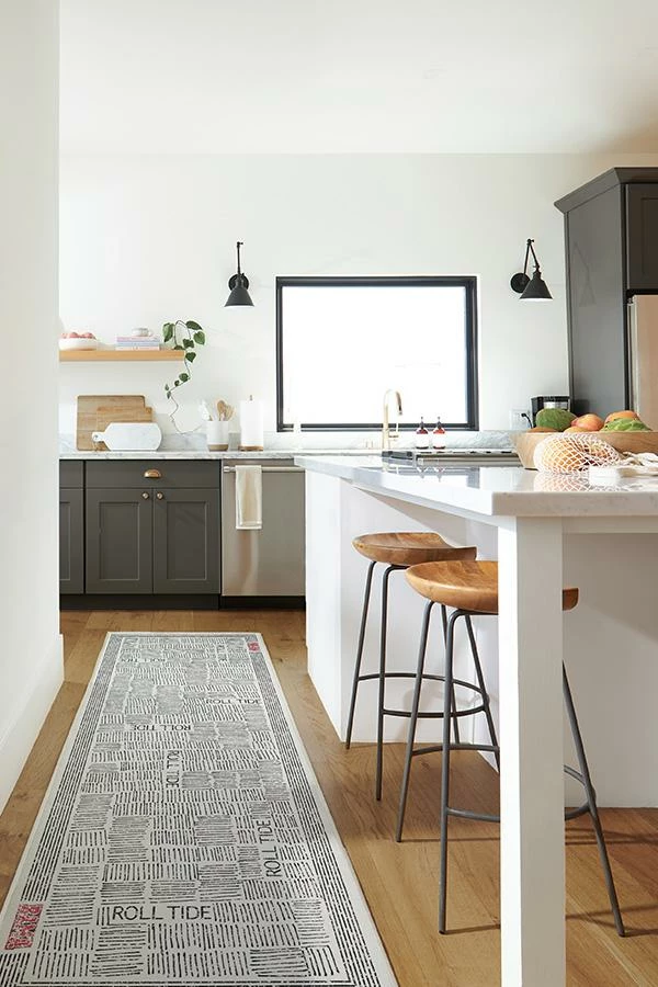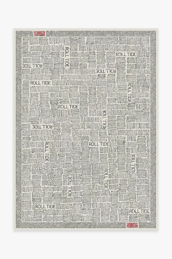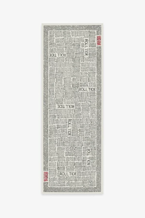 Bring that signature Alabama Attitude home. This Alabama crimson tide rug features a tally mark-inspired design, with “Roll Tide” lettering in black on a cream background and red “Bama” on both ends. Water-resistant, stain-resistant, and machine-washable.