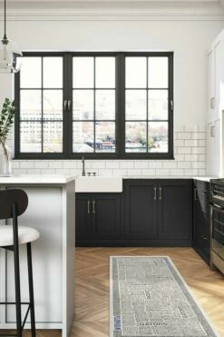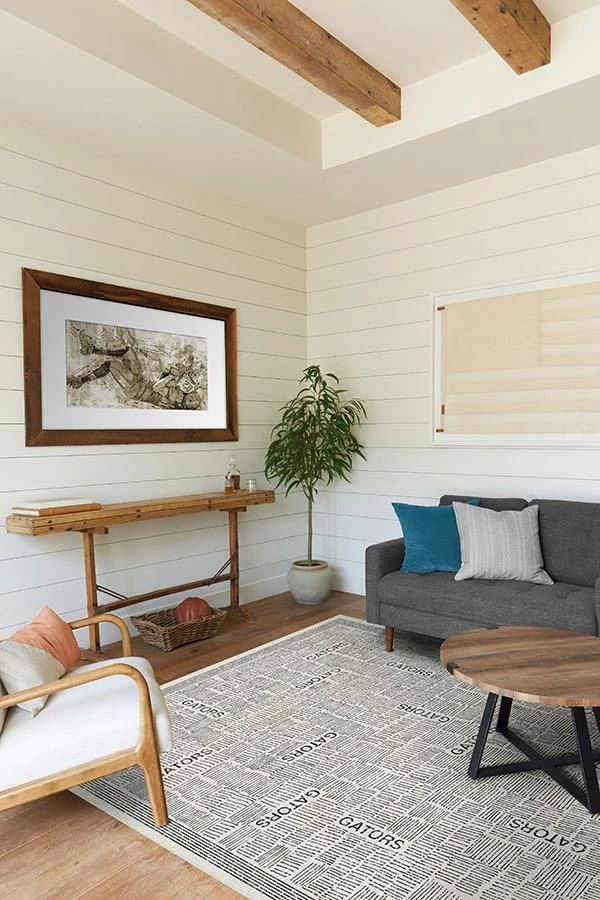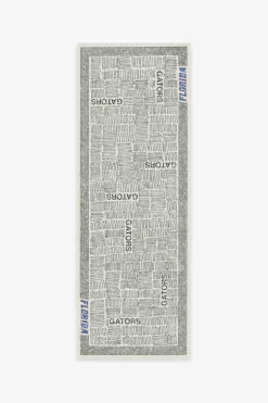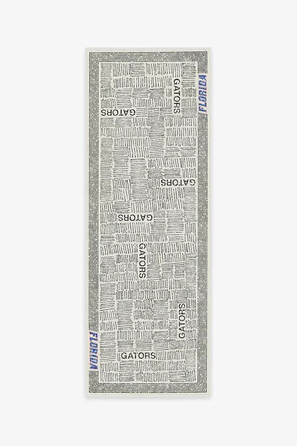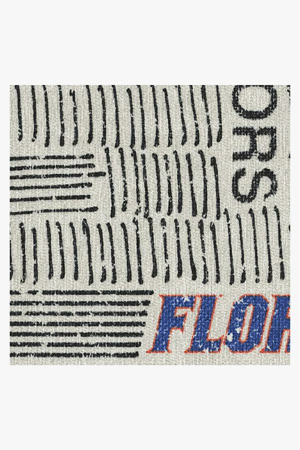 Gator Nation, unite! This cream and black rug features a tally mark-inspired design, accented with “Gators” lettering in the center and blue and orange “Florida” lettering on the edges. Water-resistant, stain-resistant, and machine-washable.