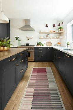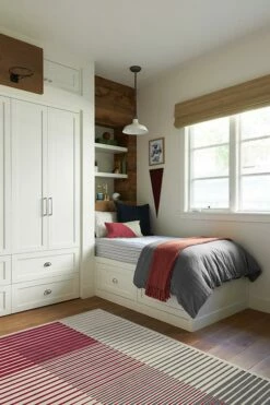 Show off your solid OU spirit. This University of Oklahoma rug features a gradient striped pattern in crimson red and grey on a dark ivory background, with home state “Oklahoma” and team name “Sooners” written on the ends. Water-resistant, stain-resistant, and machine-washable.