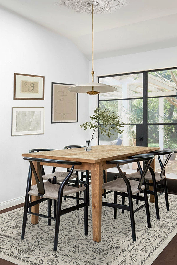 Breathe elegance into your space courtesy of our Vianna Black & Ivory Rug. It features intertwining climbing vines and flowers inspired by the woodblock print style in black set atop an ivory background. Made from our water-resistant, stain-resistant, and machine-washable low-pile Chenille material.