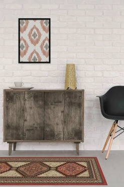 Zareen Paprika Red Rug takes inspiration from traditional Persian rug designs. Tinted in bold and earthy hues of red, brown, and natural, this rug makes a statement with its geometric patterns and hand-drawn animal designs.